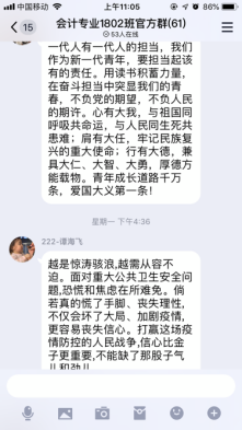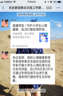疫情以来,给学院思想政治教育和心理辅导带来了新的挑战。学院领导高度重视,专门建立学院、部门、各班级抗击新冠肺炎工作群,教师以教研室为单位,学生以班级为单位每日上报信息,确保信息畅通,及时掌握防疫基本情况。多次传达有关疫情期间心理健康方面知识,教育引导学生了解疫情发生的原因背景、症状表现、治疗措施,让师生做到理性认识,科学防治。