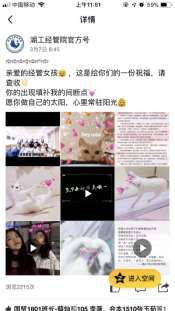 传递能力,爱不停歇。“美目盼兮竞风华女生节”活动不要太燃,微信、QQ、易班所有通道通通上线,投稿祝福源源不断。累计收到祝福视频47份,照片征集251张,易班投稿151条,QQ浏览2215次。