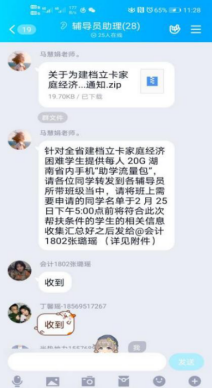 为了帮助贫困学生及时上网课,做到停课不停学,经管学院为院内56名湖南省籍建档立卡家庭经济困难学生提供了每人20G的湖南省内手机助学流量包,切实保障了贫困学生无障碍参与线上学习。