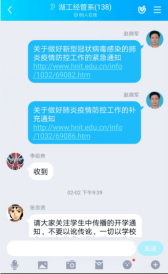根据学院师生实际情况,学院疫情防控实行分工负责、条块结合、属地管理、联防联控。坚持摸排全院每一个教职员工和学生身体健康状况,利用官网、微信、QQ、易班平台、我在校园等线上平台开展“每日健康打卡”活动,收集每位教职员工和学生每日健康状况、目前所在城市、是否接触过疑似或确诊的新型肺炎患者情况,掌握师生健康的最新动向,严格落实日报告和零报告制度。截至2月11日,全院师生未发现1例确诊病例和疑似病例。