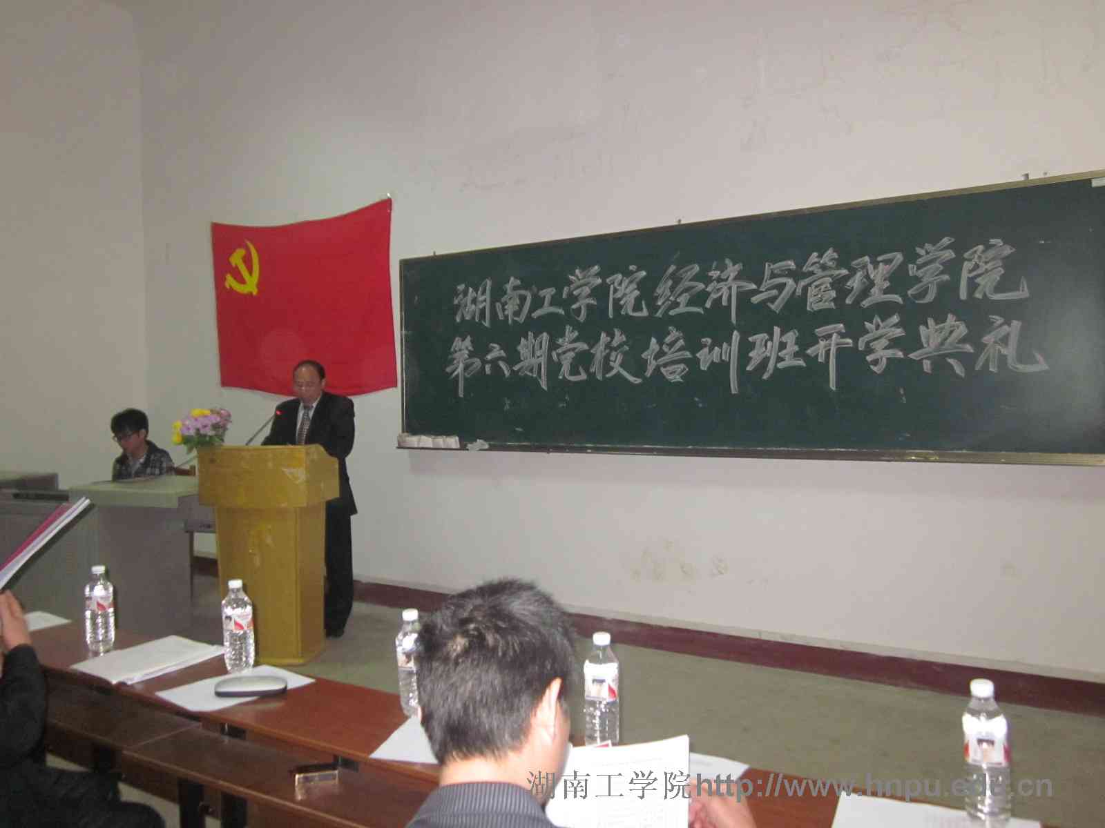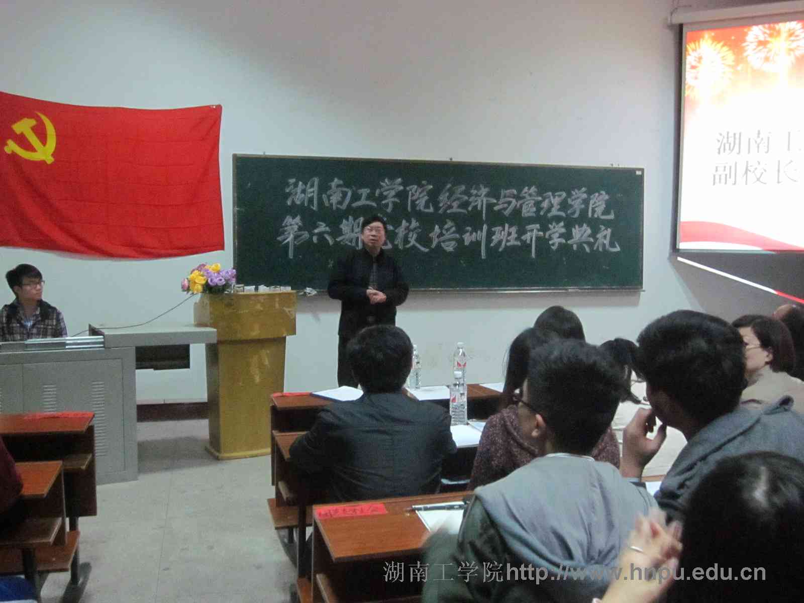 4月10日晚,经济与管理学院于南校区图书馆三楼隆重举行“把握青春脉动 实现中国梦想”第六期党校培训班开学典礼,校纪委书记刘龙昌、校宣传部长副部长肖中云、经管院领导班子、办公室主任及全体辅导员出席。院党总支副书记曹毅主持典礼。