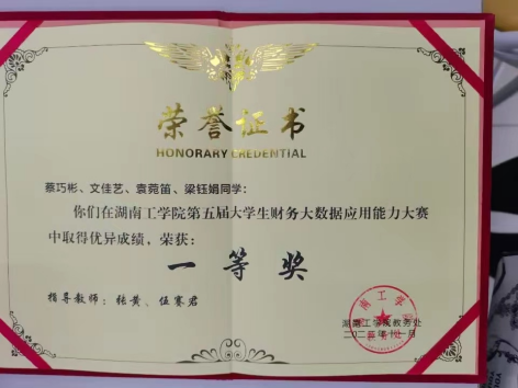 省级优秀指导教师(政府类):2人次,刘锦志(企业经营模拟)、刘锦志(酒店管理商业策划) 省级优秀指导教师(榜单类):4人次,黄飞、张诗菡、刘锦志、朱送花(学创杯) 省级优秀组织奖(政府类):企业经营模拟大赛、电子商务大赛、财务大数据应用能力竞赛 |