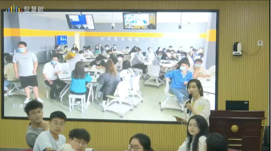 课上,温老师先对上节课讲授的内容进行了简要回顾。通过简短的案例分析、观看视频让学生更好地理解及掌握知识点,提升了课堂的趣味性。通过小组作业展示的形式,让学生自主对相关知识点进行讲解,合作展示,精彩纷呈。两校师生通过“头脑风暴”及“课堂抢答”的形式共同参与了课堂训练,同学们积极参与,课堂氛围活跃。未来一个月,两校将通过智慧树平台进行四次线上共同课堂完成四章书本内容的学习。