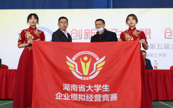 何建雄主持闭幕式。裁判长吕品对大赛进行总结,他认为教育厅的大力支持、承办校的高度重视和领导靠前指挥、志愿者团队无私奉献是大赛成功举办的关键。出席闭幕式的嘉宾为获奖队伍颁奖并合影留念。随后进行了授旗仪式,本届大赛承办方代表、经济与管理学院院长赵少平向下届大赛承办方代表、湖南工程学院管理学院院长徐运保正式授旗。最后何建雄宣布大赛胜利闭幕。历时三天的湖南省“新道杯”第五届大学生企业模拟经营大赛圆满落幕,各参赛高校的领导和老师、技术支持方、裁判组对本届大赛的成功、顺利举办给予了充分肯定。