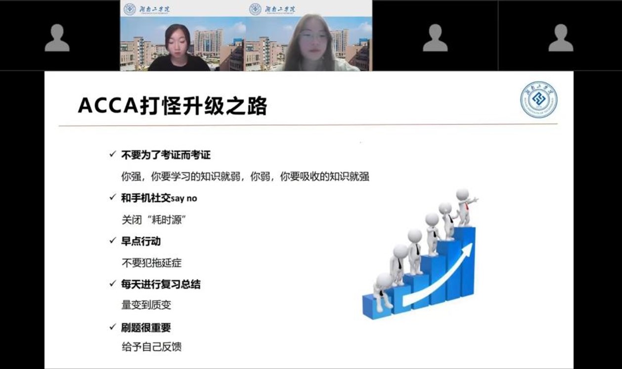 ACCA教学班优秀学生代表彭苗介绍了自己大学三年来取得的成绩和荣誉,系统分享了自己学习备考ACCA课程的经验方法及心得体会,鼓励学弟学妹们把握机会、早做规划,早日加入商学院ACCA和CFA“大家庭”,努力成长为优秀的复合型、国际化人才。