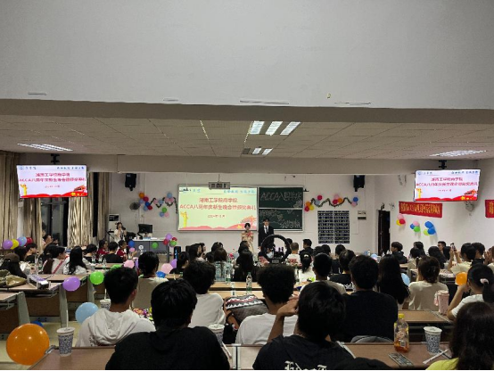 10月18日,ACCA八周年庆典之新生晚会暨颁奖典礼在经601举行。商学院领导及学校相关处室负责人、ACCA长沙办公室商务发展主任田艳梅、高顿校企合作事业部运营总监陈华伟、高顿校企合作事业部主管习亚兰、高顿校企合作事业部华南区ACCA项目主管黄惠迁、高顿长沙分校学管老师何焕谊、ACCA方向班全体师生及各学院师生代表与会。