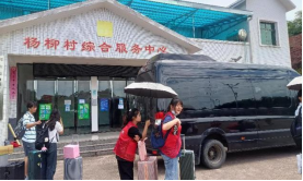 6月24日下午1点20,实践团成员不畏酷暑,一下高铁站还来不及休息,个个就手提行囊,背扛肩包,赶往开元集团网站阳光服务中心大厅前坪集合上车,耗时一个多小时,终于到达目的地杨柳村。