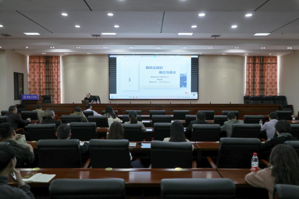 周险峰教授以《教研主题的确立与表达》为题,从教师教研的价值、教研主题的确立、教研主题的表达、教研必要的准备等四个方面对教改项目申报工作及项目申请书撰写进行了详细讲解。会后,周险峰教授还针对今年省级教改推荐项目进行了一对一的指导。