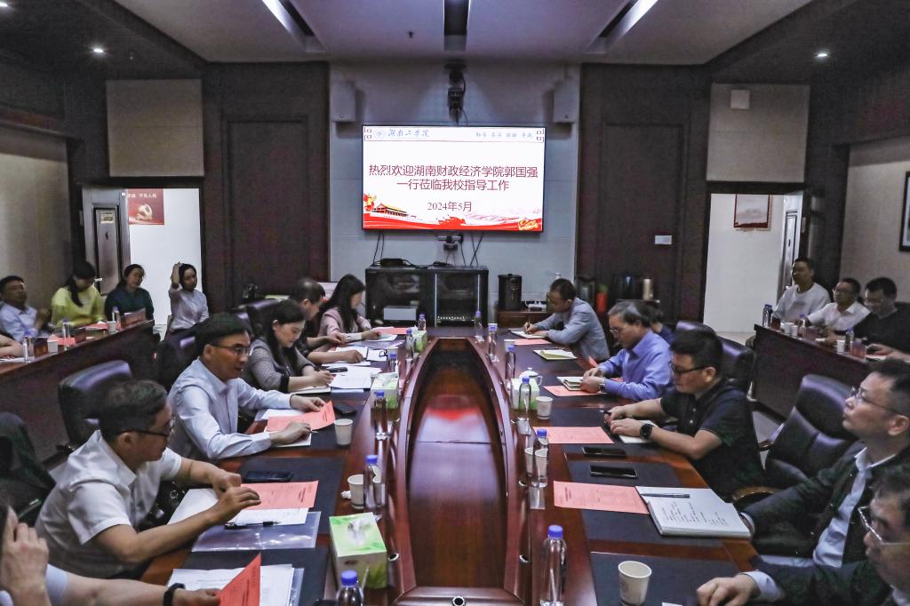 郭国强对学校的热情接待表示感谢,并简要介绍了湖南财政经济学院的发展情况,表明此次来访交流主要是学习借鉴开元官网在审核评估工作中的经验做法。