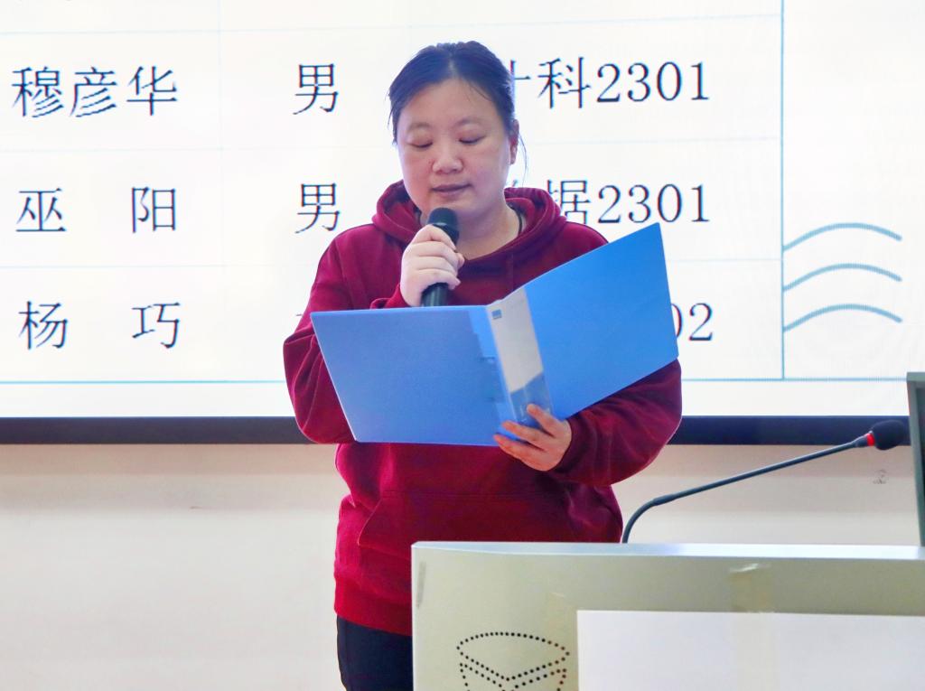 黄馨仪宣读第十八届团委学生会任命决定,刘泽芬、热苏里·乌斯曼分别为第十八届团委学生会干部颁发聘书。