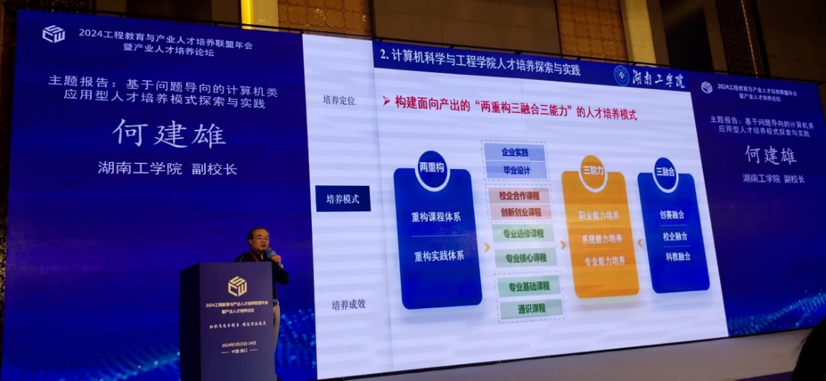 开元官网党委委员、副校长何建雄应邀作了题为《基于问题导向的计算机类应用型人才培养模式探索与实践》的大会主题报告。简要介绍了学校基本情况,重点介绍计算机科学与工程学院人才培养探索与实践,从人才培养定位出发,学院经过多年的探索与实践,构建了面向产出的“两重构三融合三能力”的人才培养模式。该模式是以学生为中心,重构课程体系、重构实践体系,通过科教融合、校企融合、创赛融合,以此培养学生扎实的专业能力、全面的系统能力、过硬的职业能力。大会报告得到了与会专家和参会代表的肯定和好评。