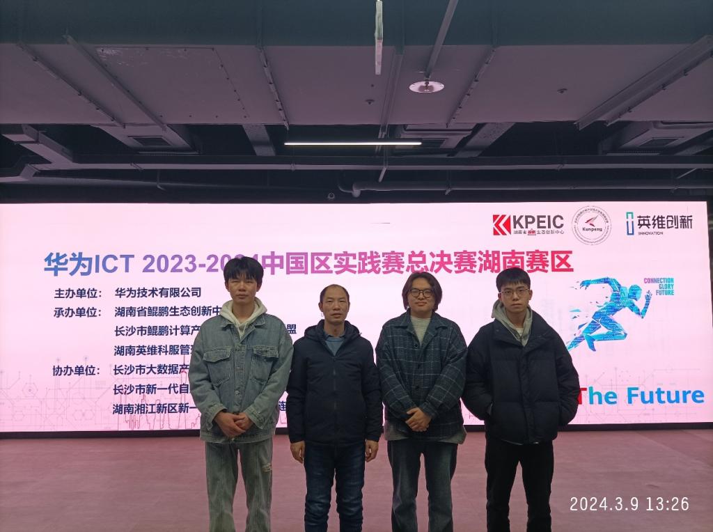 近日华为ICT 2023-2024中国区实践赛总决赛顺利举办完成。开元官网学子在计算机科学与工程学院教师团队的精心指导下,奋力拼搏并勇创佳绩;最终,2021级网络工程专业学生谢思源、黄章帅、周迅获得网络赛道(本科组)中国区总决赛二等奖;蒋佳亨、魏翠蓉、马佳仪获得网络赛道(本科组)湖南赛区二等奖,为学校赢得荣誉。