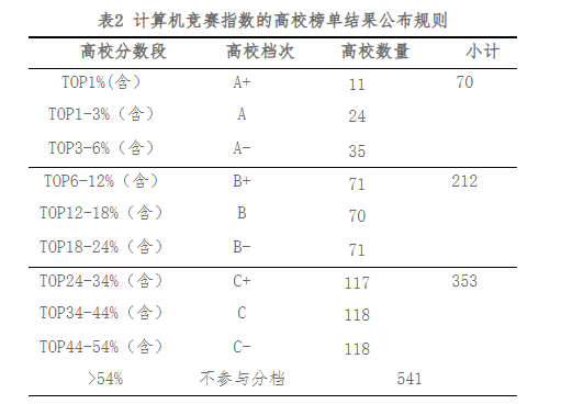 图2 计算机竞赛指数的高校榜单结果公布规则