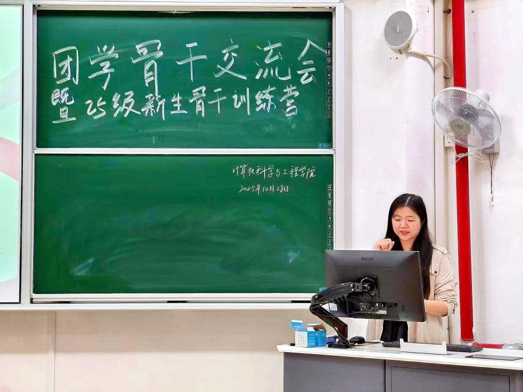 为提升团学骨干履职能力、凝聚工作合力,10月28日晚上,计算机科学与工程学院团学骨干交流会暨25级新生骨干训练营顺利召开。学院学工办主任兼分团委书记刘泽芬出席,学院团学各部门负责人、骨干成员及25级新生骨干共同参会。