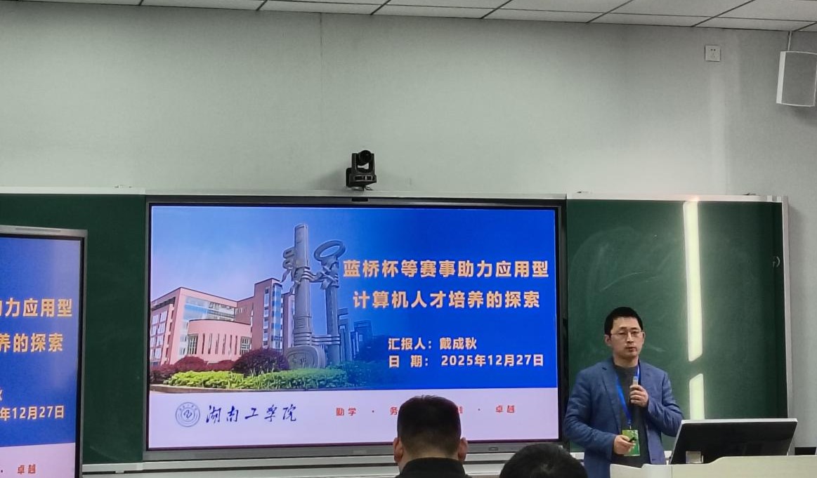 2025年11月29日,第十七届蓝桥杯大赛湖南赛区“以赛促学、以赛促教、赛教结合”研讨交流会在中南大学电子信息学院顺利召开。本次会议由蓝桥杯全国大学生软件和信息技术大赛组委会主办,汇聚全省20多所高校的近百位教师代表,围绕赛事升级、赛教融合及人才培养等核心议题展开深入交流,我院副院长戴成秋应邀参会并作专题报告,计算机科学与技术教研室主任曹水莲、计算机基础教研室主任周瑞玲同行参加了本次交流会。