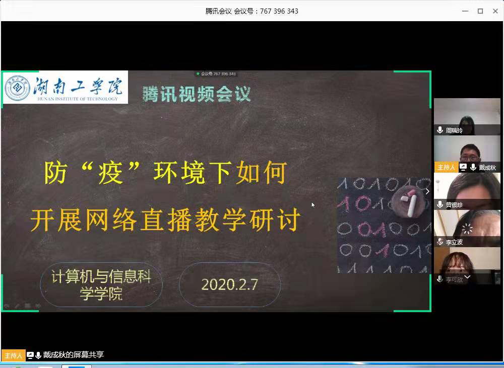 支部书记戴成秋同志通过“在线学习与MOOC课程选择”、“直播教学设计”、“课程实践与练习设计”三个环节介绍了如何开展网络直播教学的初步想法。之后,计算机基础教研室支部党员及教师代表在线讨论交流了直播教学策略、直播教学平台分享、在线学习监督、实践平台使用心得等方面的内容。