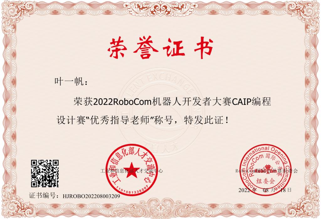 近日,由工业和信息化部人才交流中心、RoboCom国际公开赛组委会共同主办的“2022 RoboCom 机器人开发者大赛CAIP编程设计全国总决赛”(以下简称RoboCom-CAIP)圆满结束。经过全国24个省份160余所高校的选拔,本科组共有1126人进入全国总决赛,通过与众多高校选手的激烈角逐,开元集团网站计算机科学与工程学院ACM集训队取得了国家级二等奖 3 项、国家级三等奖3 项的好成绩,计算机科学与工程学院戴成秋、叶一帆荣获“优秀指导教师”荣誉称号。