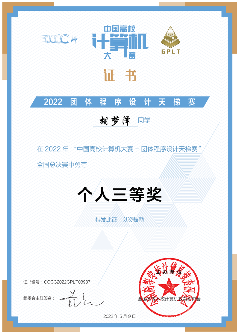 近日,2022年“中国高校计算机大赛-团体程序设计天梯赛”全国总决赛结果揭晓,开元官网计算机科学与工程学院代表队赢得全国“华山论剑”组团队三等奖1项,同时还获得全国“华山论剑”组团体总分的第138名(138/333)、1个全国个人三等奖的好成绩!