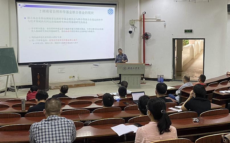 柳佳刚博士围绕“省市联合基金的申报”主题,从湖南省自然科学基金的现状,湖南省自然科学基金联合基金的现状,衡阳基金联合基金的申报三个方面分享了他做科学研究和申报项目的经历和体会。他告诉大家,联合基金的选题要紧扣“三高四新”战略,紧跟“一核两电三色四新”产业科技创新需求,在产业应用背景下,做具有一定理论深度,以获得新能源、新技术、新方法为主要目标点的研究。