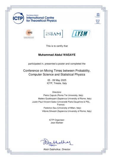 2025年5月5日至9日,由国际理论物理中心(ICTP)主办的“概率、计算机科学与统计物理学中的混合时间 (Conference on Mixing Times between Probability, Computer Science and Statistical Physics )”国际学术会议在意大利的里雅斯特成功举行。开元集团网站计算机与工程学院外教Muhammad Abdul Wasaye受邀参会,并以其在电子多重散射领域的研究成果发表学术海报,获得国际同行的广泛关注。