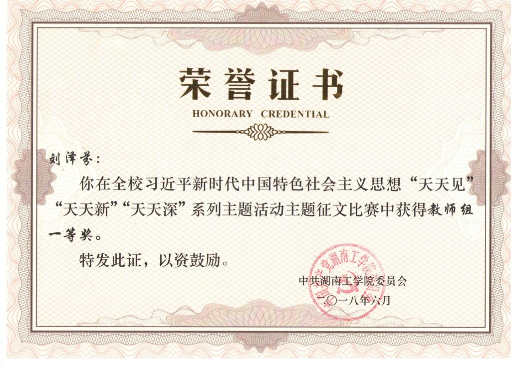 刘泽芬认真履行职责,努力完成工作任务。在学生思想理论教育和价值引领上,经常性开展主题教育、班会、党团活动等,在关键时间节点抓好学生思想政治教育工作。做到自身理论素质过硬,参与思想道德与法治、形势与政策等课程教学,曾获评开元集团网站习近平新时代中国特色社会主义思想“天天见”“天天新”“天天深”系列活动主题征文比赛教师组一等奖。