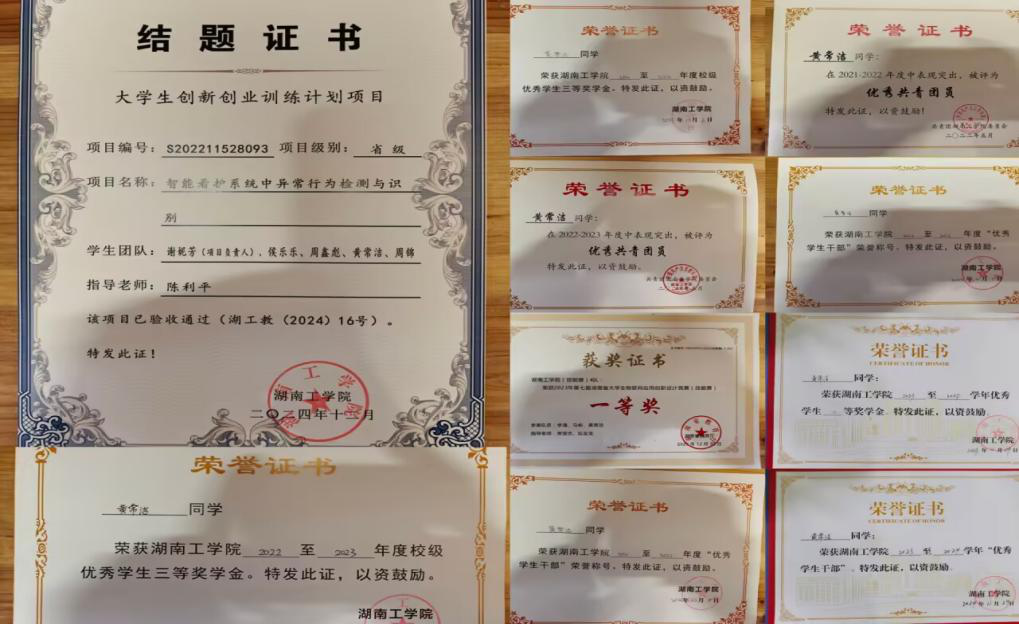 在校期间多次获得省级、校级荣誉,荣获校级二等奖学金1次、校级二等奖学金2次、校级优秀共青团员2次、校级优秀班干部3次,曾参加2023届湖南省物联网竞赛技能赛获得省级一等奖、参与省级大创项目并成功结题。