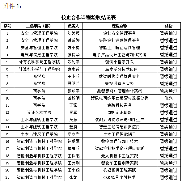 根据《关于开展对第一批校企合作课程结项验收和第二批校企合作课程中期检查工作的通知》(校教务〔2024〕236号),经专家评审,确定了结题验收和中期检查结果。现将结题验收和中期检查结果予以公布。