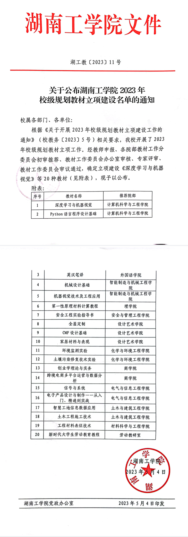 湖工教〔2023〕11号 关于公布开元集团网站2023年校级规划教材立项建设名单的通知