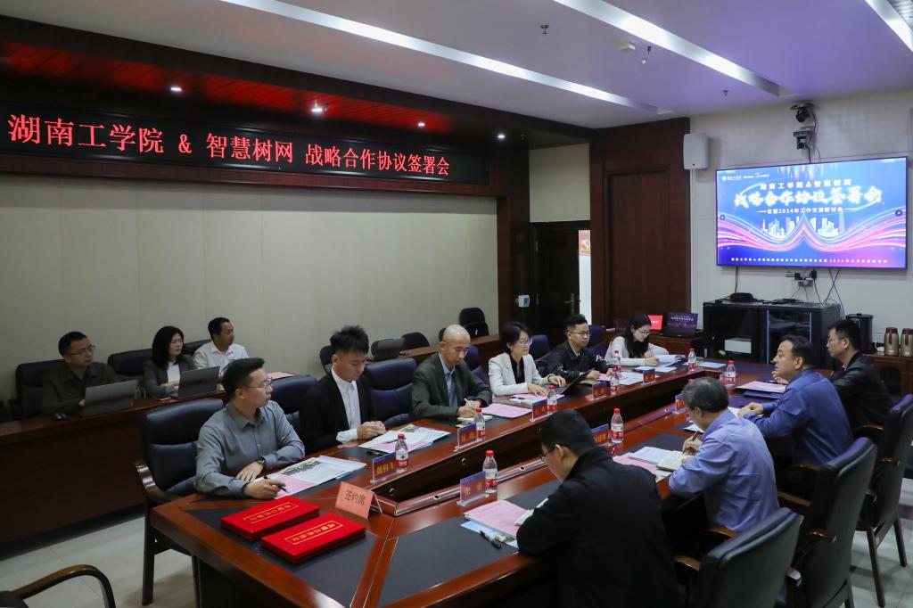 教务处副处长张勇、智慧树网KG事业部总经理钱海、智慧树网湖南一部经理蒋术参加签约仪式。(文/谭艳 图/刘歆昱 审稿人/一审:彭婷 二审:彭国柱 三审:肖中云 )