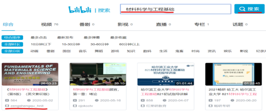 为了照顾部分网络条件不佳的同学,整个课程的直播教学过程进行了视频录制,并将录播视频公开在哔哩哔哩网站上。目前课程录播视频播放次数已经超过500余次。在哔哩哔哩网站直接搜索“材料科学与工程基础”,可学习本课程的录播视频。