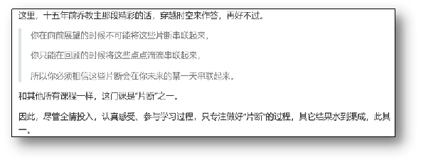 知识体系的架构,涉及学生学习经历、状态(动态)、习惯、方法、思维方式和认知水平等。本课程用写信、思维导图、讨论、做成果汇报等方式,尽可能让学生呈现真实情况,同时为他们展示参考样板,提供锻炼平台,收效非常好。