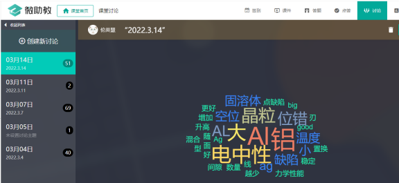 图4 某一次课的学生参与课堂讨论词云
