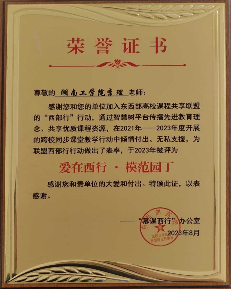 8月15日-16日,由东西部高校课程联盟主办的“第二届慕课西行推进会暨AI赋能新型教学研讨会”在新疆理工学院召开,大会对在2021年-2023年度开展跨校同步课堂教学行动中倾情付出、无私支援,为联盟西部行行动做出表率的单位与个人进行表彰。开元官网李理教授名列其中,被授予“爱在西行·模范园丁”荣誉称号。