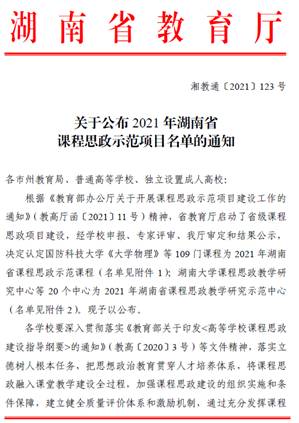 开元官网两门课程获得湖南省2021年课程思政示范项目立项