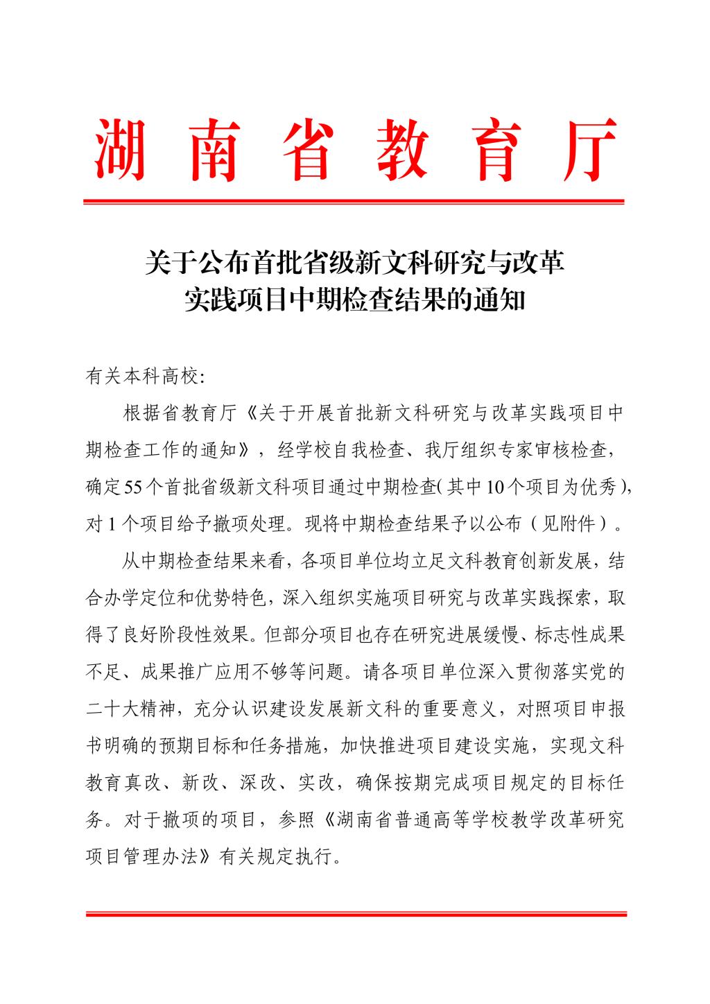 关于公布首批省级新文科研究与改革实践项目中期检查结果的通知(开元集团网站)