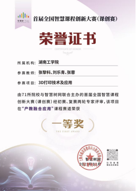 材料科学与工程学院曹羽鑫、叶拓、李理等教师团队的《工程材料表征技术》,获“人工智能+”课程赛道一等奖。智能制造与机械工程学院张黎科、刘乐青、张蓉等教师团队的《3D打印技术及应用》,获“产教融合应用”课程赛道一等奖。