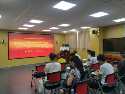 此次党课的主题是学习贯彻习近平新时代中国特色社会主义思想,刘安民院长主要从“把马克思主义哲学作为看家本领”、“提高科学思维能力”、“坚持问题导向”、“重视调查研究”、“依靠学习走向未来”五个方面内容来展开,用最朴实、通俗易懂的话语向支部党员讲授新时代坚持和发展中国特色社会主义的能力建设之内在要求。他讲到“我们应该用理论指导实践,用实践检验理论,也就是毛主席说的‘从实践到理论再到实践’,只有这样才能更好地建设社会主义现代化,实现中华民族伟大复兴的中国梦”。