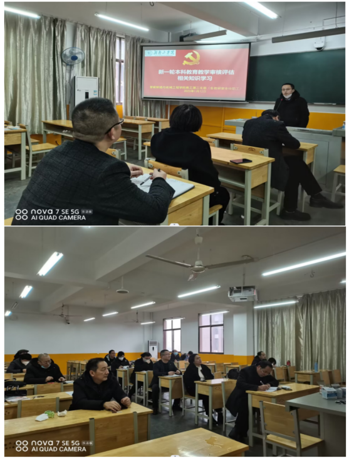 2023年1月12日上午,教工第二支部在4412教室开展主题党日活动,学习“新一轮本科教育教学审核评估”知识。活动由支部书记董海兵主持,党委书记范志明和学院副院长王小虎莅临现场进行指导。支部所属教研室全体教职工参加了学习。