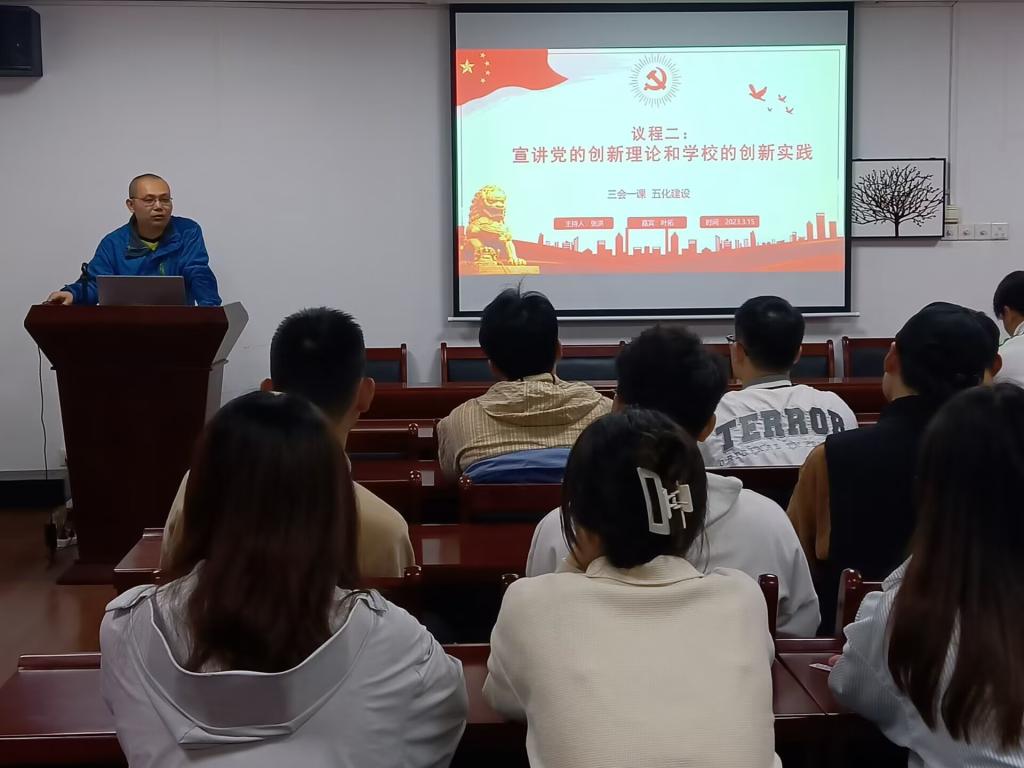 一、党委委员叶拓同志讲话;二、宣讲党的创新理论和学校的创新实践;三、解读科教兴国战略和推进“三位一体”重大部署;四、阐释学校服务地方战略定位和使命任务新思路新举措;五、互动讨论发言。