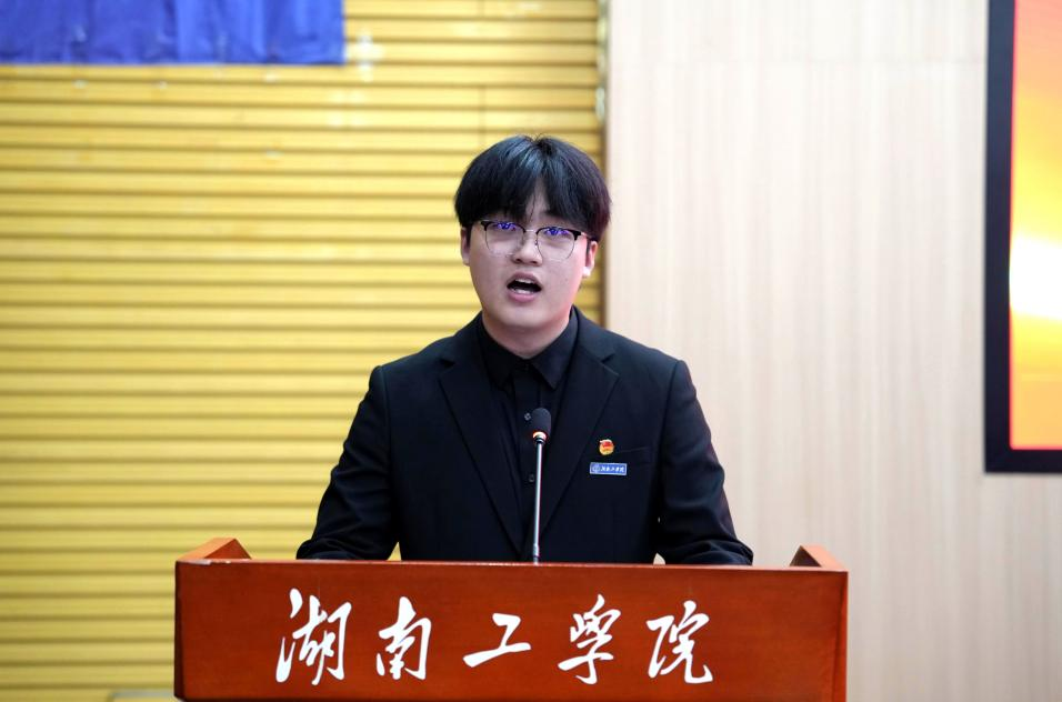 第十七届学生会执行主席易文浩向全体参会人员做述职报告,总结过去一年工作,并向新一届团学干部提出建议。