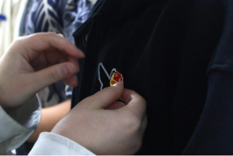 仪式在庄严的国歌声中拉开帷幕,全体参会人员肃然起立,齐声高唱国歌。随后,团委学生常务副书记陈文卓同学代表团委宣布了新团员名单,团委书记王雪舟老师为新团员颁发了团员证,并亲自为他们佩戴团徽。团徽是共青团的代表的徽章,是团员身份的象征,这提醒着提醒同学们记住“团员”这一身份代表的是更多的责任和担当。