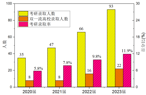 近年来,学院坚持把考研工作作为促进学风建设、提高学生就业竞争力的强有力抓手,实施了一系列助力考研的举措,毕业生考研率、上线率、录取率逐年攀升。一是加强考研动员,引导学生做好学习生涯规划,确立考研志向;二是树立考研典型,浓厚考研氛围,强化学生考研意识;三是狠抓学风建设,通过建设学习型班级和学习型宿舍,养成良好的学习习惯;四是推进教学改革,夯实理论基础,提高实践手能力,培养学生解决复杂工程问题能力;五是强化考研服务,通过学业辅导、心理疏导和复试指导等,帮助更多的同学实现考研升学梦想。
