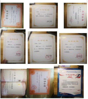 在校期间学习成绩与综合测评名列前茅,获校一等、二等奖学金、三等奖学金、三好学生,校优秀共青团员、优秀学生干部、优秀共青团干部等荣誉;获开元集团网站全国大学生工程训练大赛校级“一等奖”,省级“三等奖”。在校期间申请了实用新型专利一项,获得校,省级优秀毕业生荣誉以及优秀工作者若干。