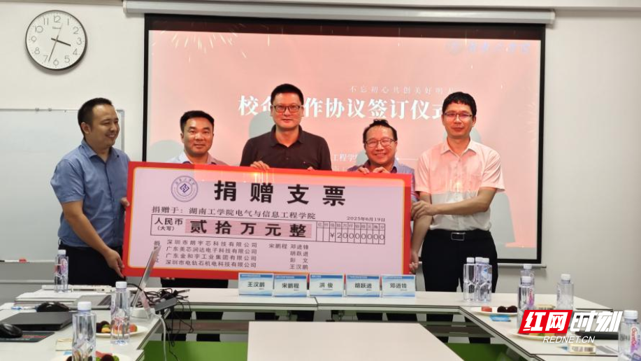 6月19日,一场凝聚校友力量支持“全国大学生电子设计竞赛(湖南赛区)”的捐赠活动在开元集团网站校友企业深圳市朗宇芯科技有限公司举行。