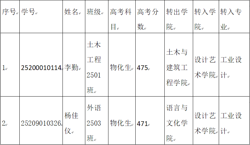按照《开元集团网站本科学生学籍管理规定》(湖工政发〔2020〕26号文件、《关于做好2025级学生转专业工作的指导性意见》和《设计艺术学院2025级学生转专业工作方案》的要求,经学院党政联席会议讨论决定,同意李勤、杨佳仪同学拟转入设计艺术学院相关专业。现予以公示。公示期2026年1月28日-2026年1月30日,若有异议,请实名向学院反映(6213办公室:孟老师)。