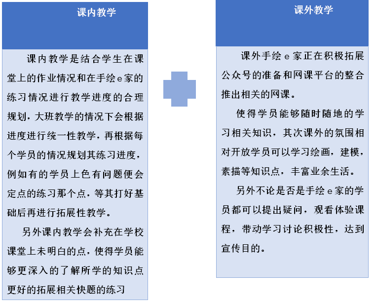 第二阶段变是:根基已经打牢固随着互联网时代的到来创新,推陈出新也成为手绘e家发展的必要趋势,所以我们创了线上线下教学模式。