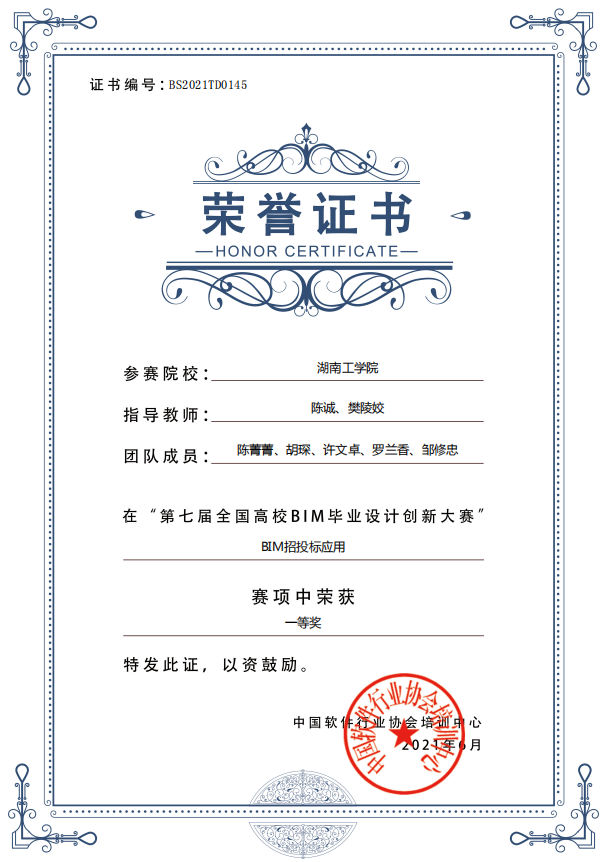 (1)“第七届全国高校BIM毕业设计创新大赛”全国一等奖。