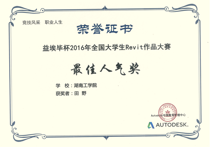 益埃毕杯全国大学生revit 大赛 最佳人气奖、建筑组三等奖 |