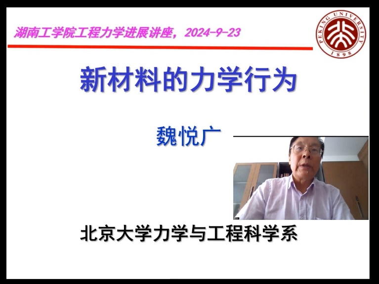9月23日,智能制造与机械工程学院组织了一次线上学术活动,中国科学院院士、北京大学博雅讲席教授、信息与工程学部副主任、北京工程科学与新兴技术高精尖中心主任、中国力学学会副理事长魏悦广院士作了题为《新材料的力学行为》的学术讲座,校党委副书记何建雄教授主持讲座,智能制造与机械工程学院、理学院部分师生聆听了讲座。