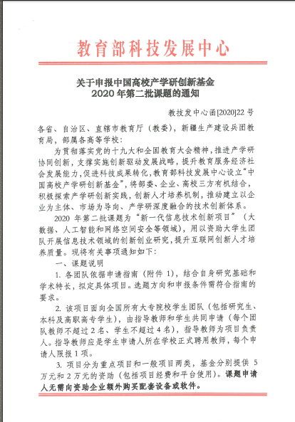 转发:关于申报中国高校产学研创新基金2020年第二批课题的通知